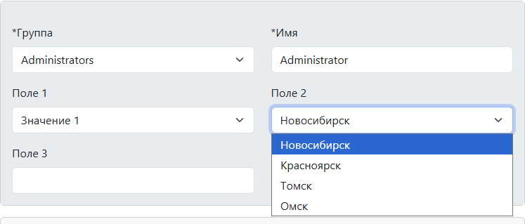 Примечание: вместо параметра Поле 1(2,3) может быть другое название - оно задается администратором с помощью переводов.